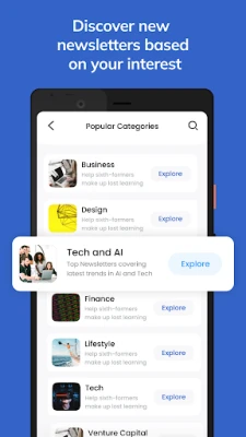 Add Letter lets you discover new newsletters to subscribe to based on your interests. Whether it's design, marketing, finance or technology- we have something for everyone!