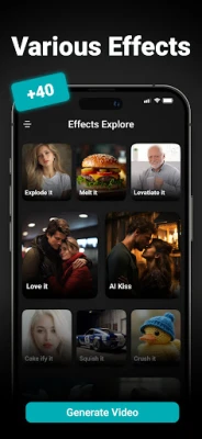 ● Filters & Effects: Elevate videos with peel, melt, explode, levitate, or cake-ify effects. Make every frame unforgettable!