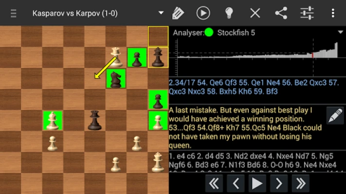 • Analyze completed games in their entirety using up to 4 chess engines, with all analysis results displayed graphically. ★