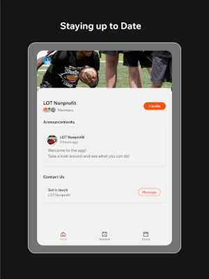 Allows for users to keep track of schedules, events and their tickets to events for example football camps. It also allows users to order tickets to the events posted and access the store.