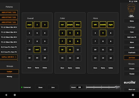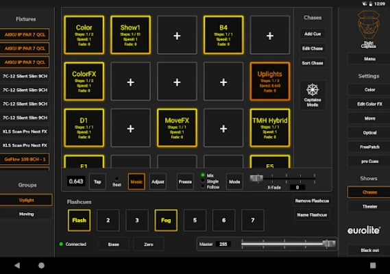 A password-protected mode allows operators to recall and adjust lights only, but not change programs or shows. Light Captain is therefore also suitable for installations and clubs where the lights are pre-programmed and need to be operated by different people without sources of error.