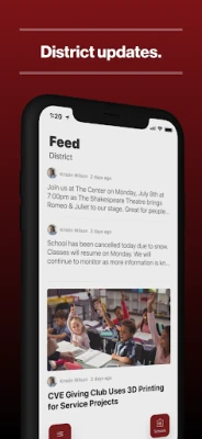 DISTRICT UPDATES In the Live Feed is where you’ll find updates from the administration about what’s going on in the district right now. Whether that’s celebrating a student’s success, or reminding you about an upcoming deadline.