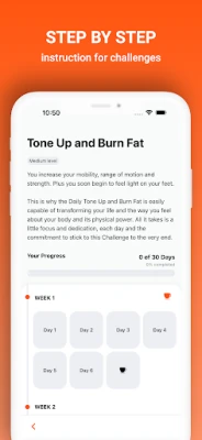 - Activity tracking makes it easy to follow your workout completion, progress, and total calories burned.