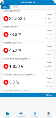 Die App verwendet den Zugang zu Ihrem von uns eingerichtetem sicheren ADDISON OneClick und setzt die dort bereitgestellten Daten in eine mobile betriebswirtschaftliche Auswertung um. Damit haben Sie Ihre Unternehmenszahlen sehr viel schneller zur Verfügung und das an jedem beliebigen Ort, an dem es eine Internet-Verbindung gibt.