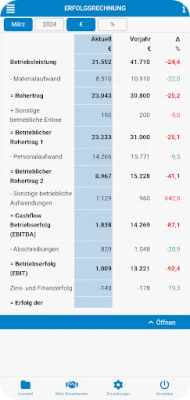 ▪ Monatliche Erfolgsrechnung mit Vorjahresvergleich und Veränderung