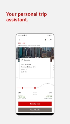 • Real-time information and flight status: In the 24 hours before your flight, your personal travel assistant will inform you of all important updates about your trip. Push notifications will appear on your home screen, so you always know when it’s time to check in or if there have been any gate changes. This way you always have an overview of your flight and the most current information.