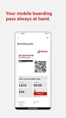 • Flight ticket and on-board services: With the SWISS app, you always have your mobile boarding pass and on-board services in your pocket, even during the flight and when you’re offline. This means you receive important flight information when you need it, ensuring that any changes to your flight don’t come as a surprise.