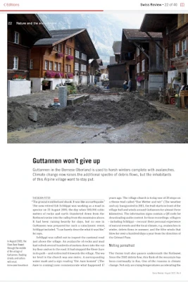 The magazine for the Swiss abroad, edited by the Organisation of the Swiss Abroad (OSA) is published six times a year in German, French, English and Spanish. The “Swiss Review” provides information on the latest political and social developments in Switzerland, and connects the Swiss abroad with their former home. Particular emphasis is placed on political information to enable Swiss citizens living abroad to exercise their electoral and voting rights.